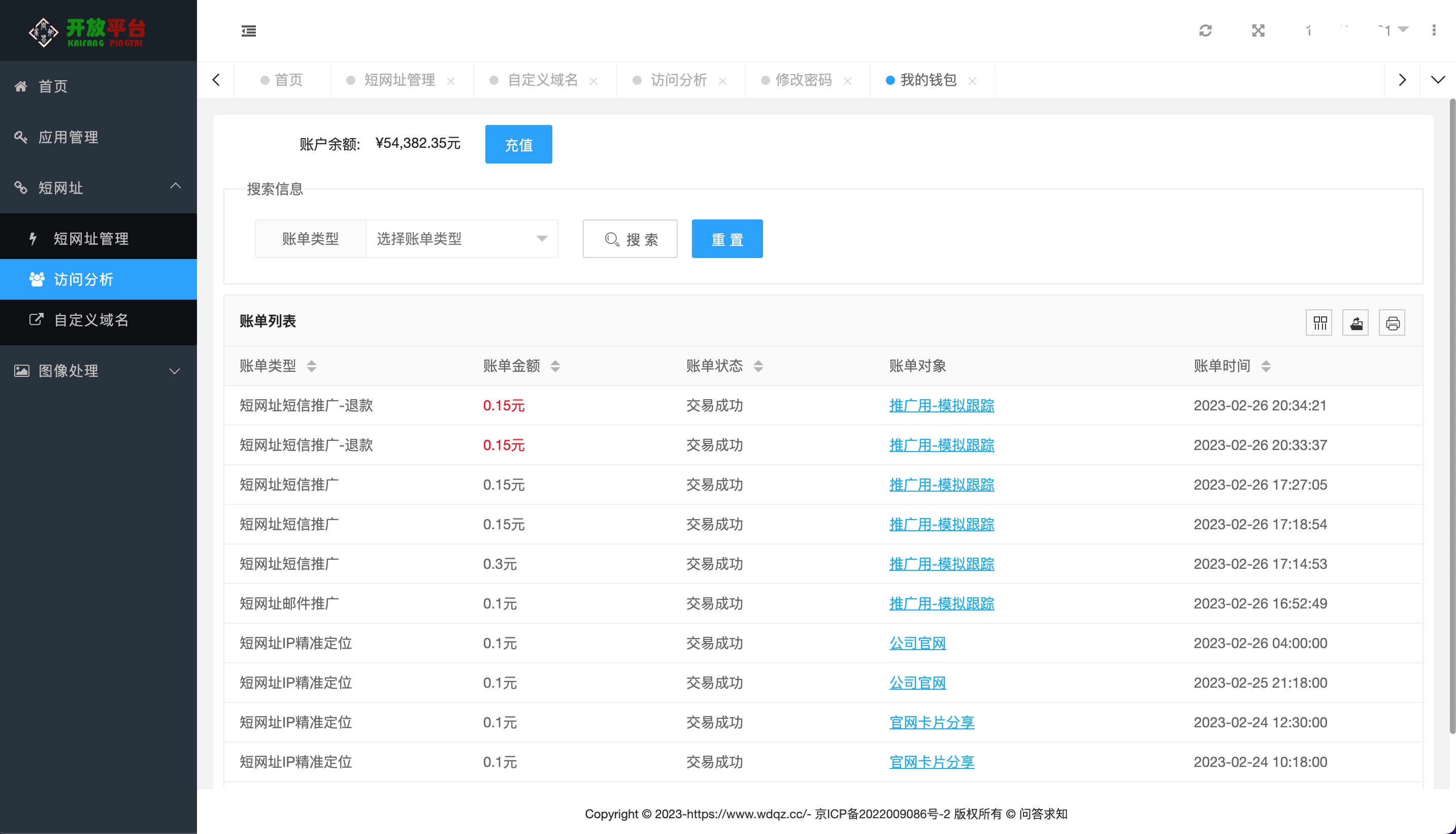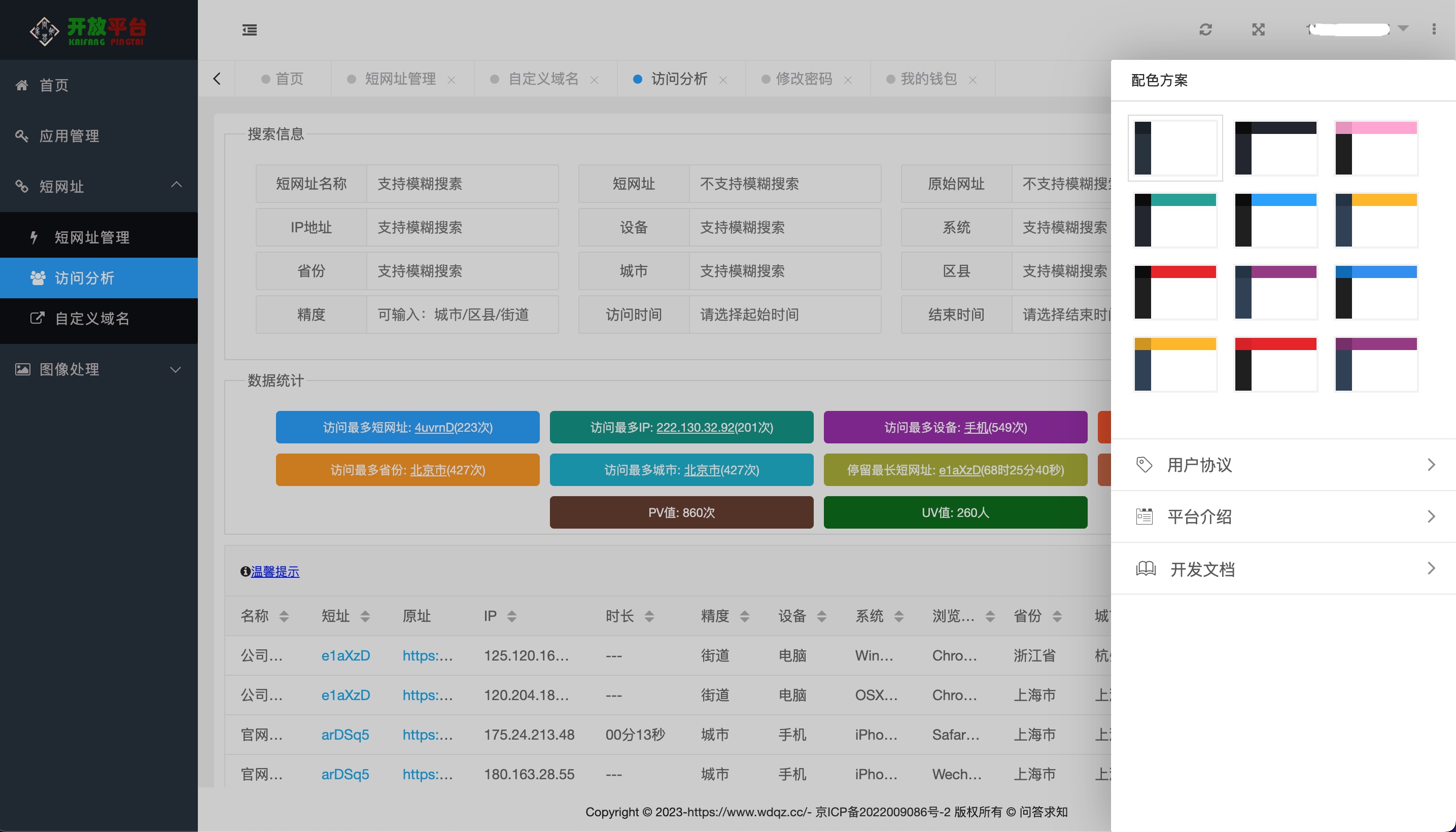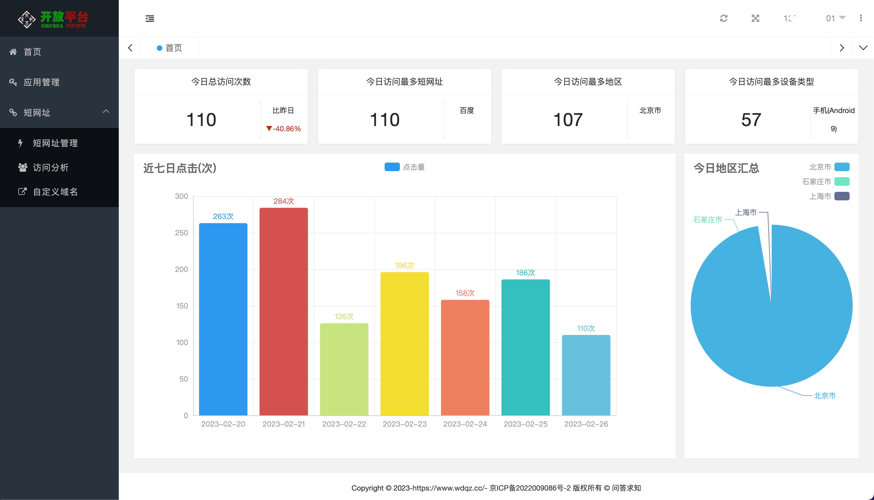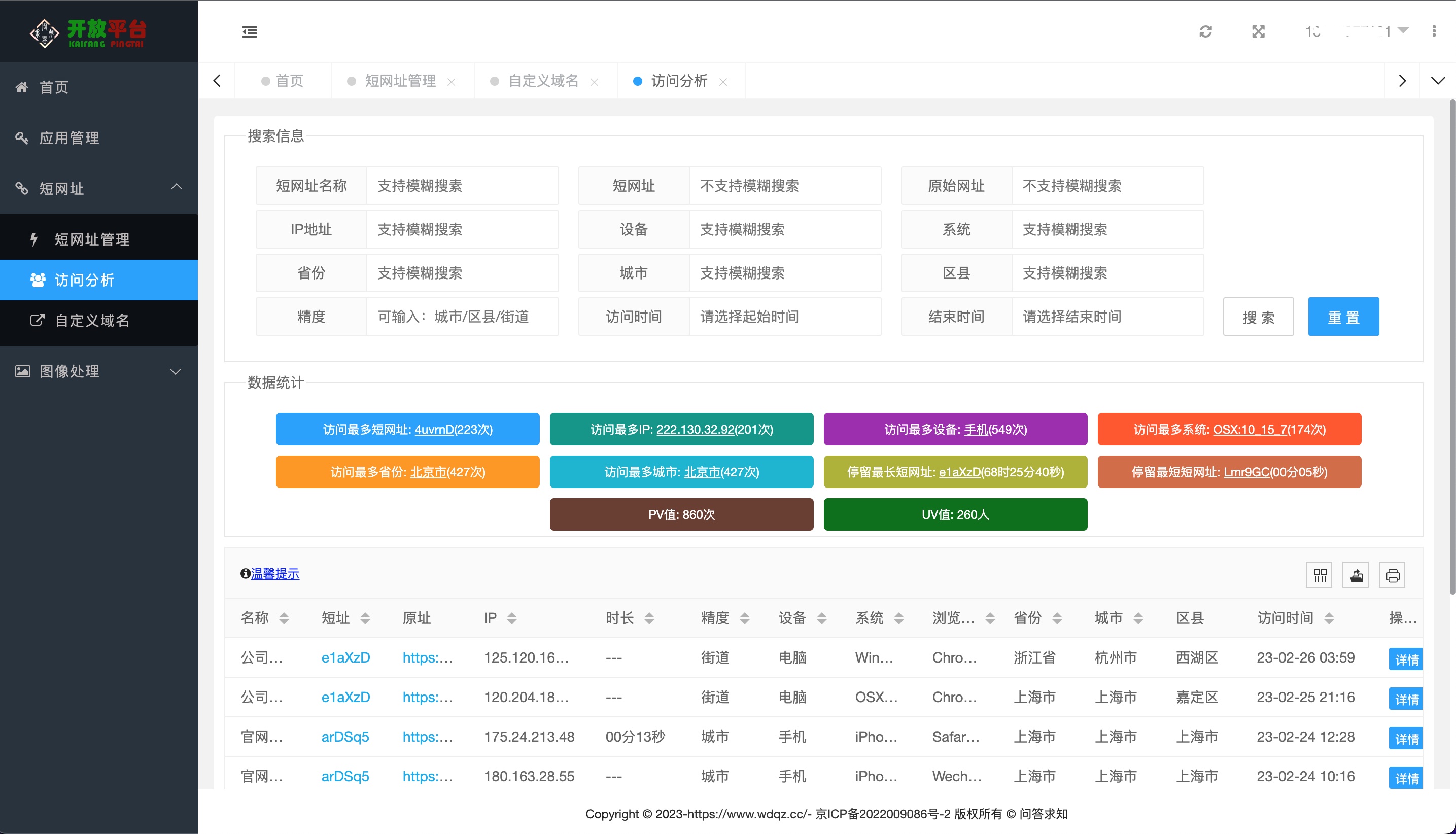 (三)访问统计功能,平台提供多维度的短网址访问统计。