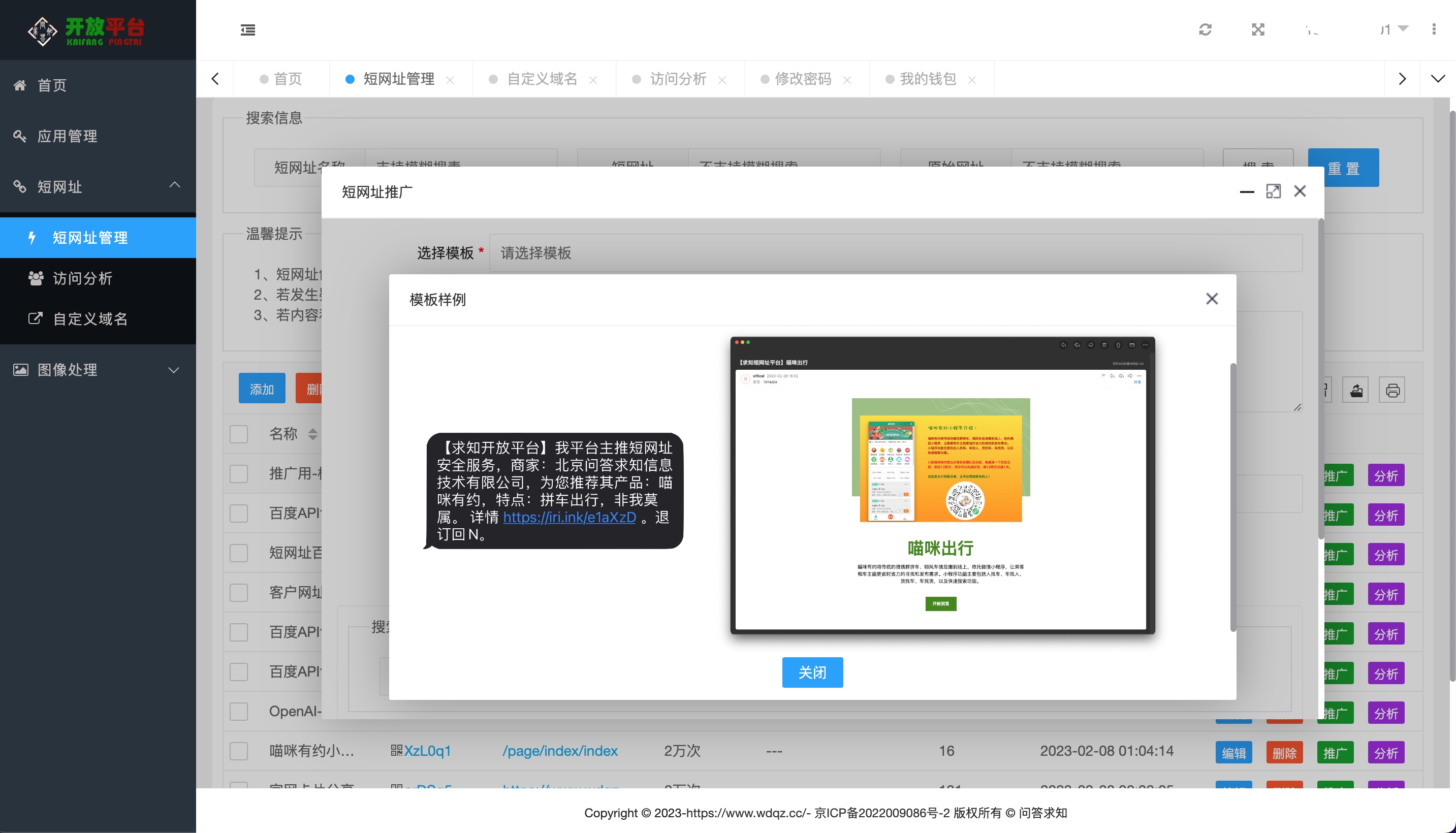 问答求知开放平台,简称求知开放平台,为此推出了短网址服务,并免费提供可视化管理平台给客户使用。