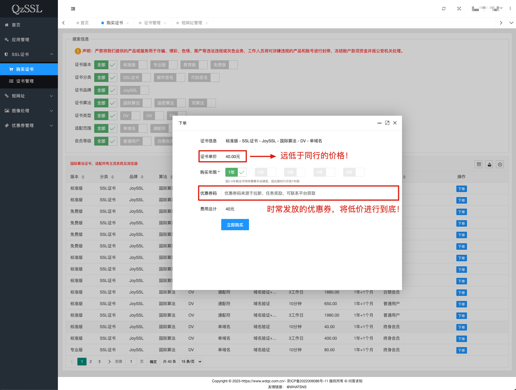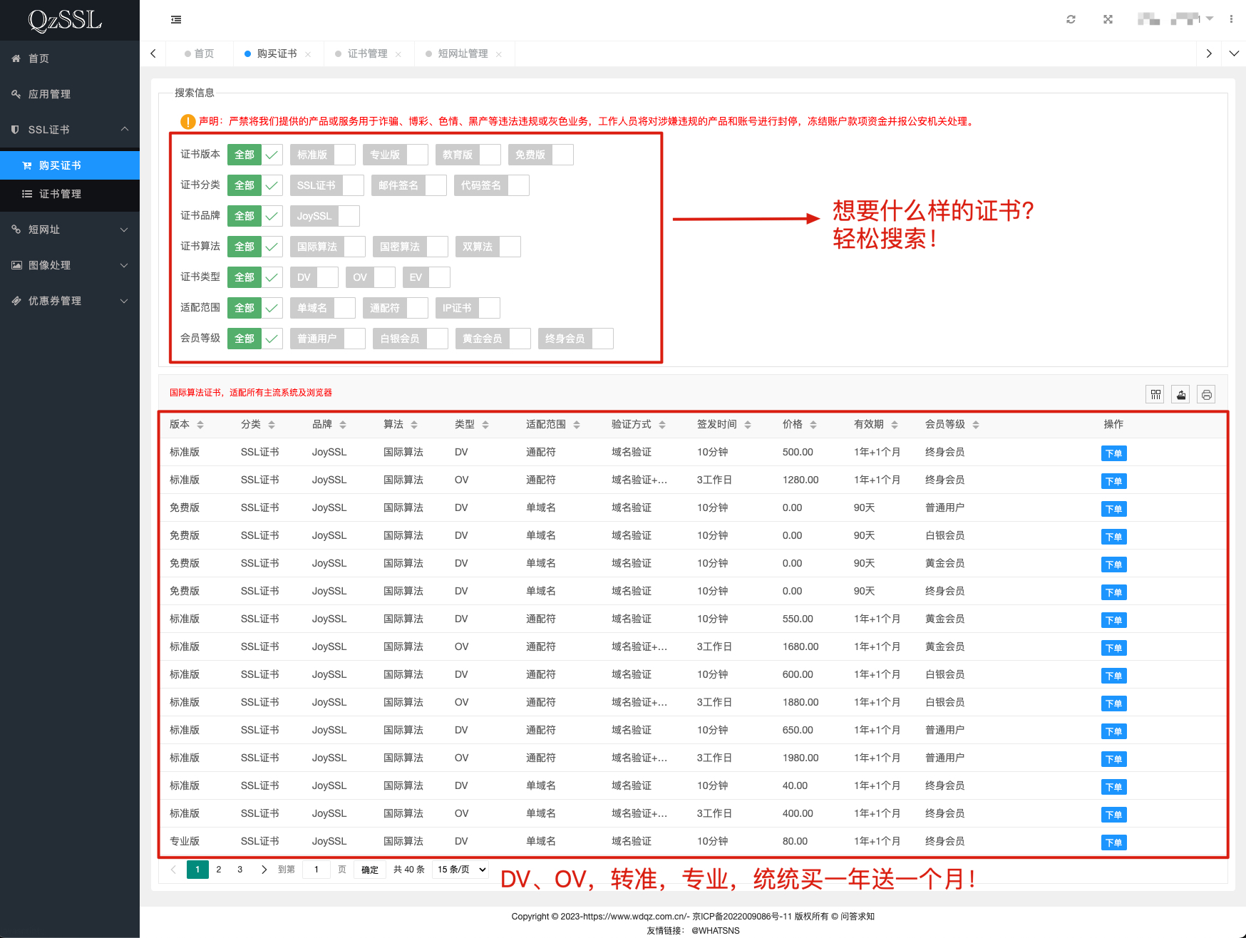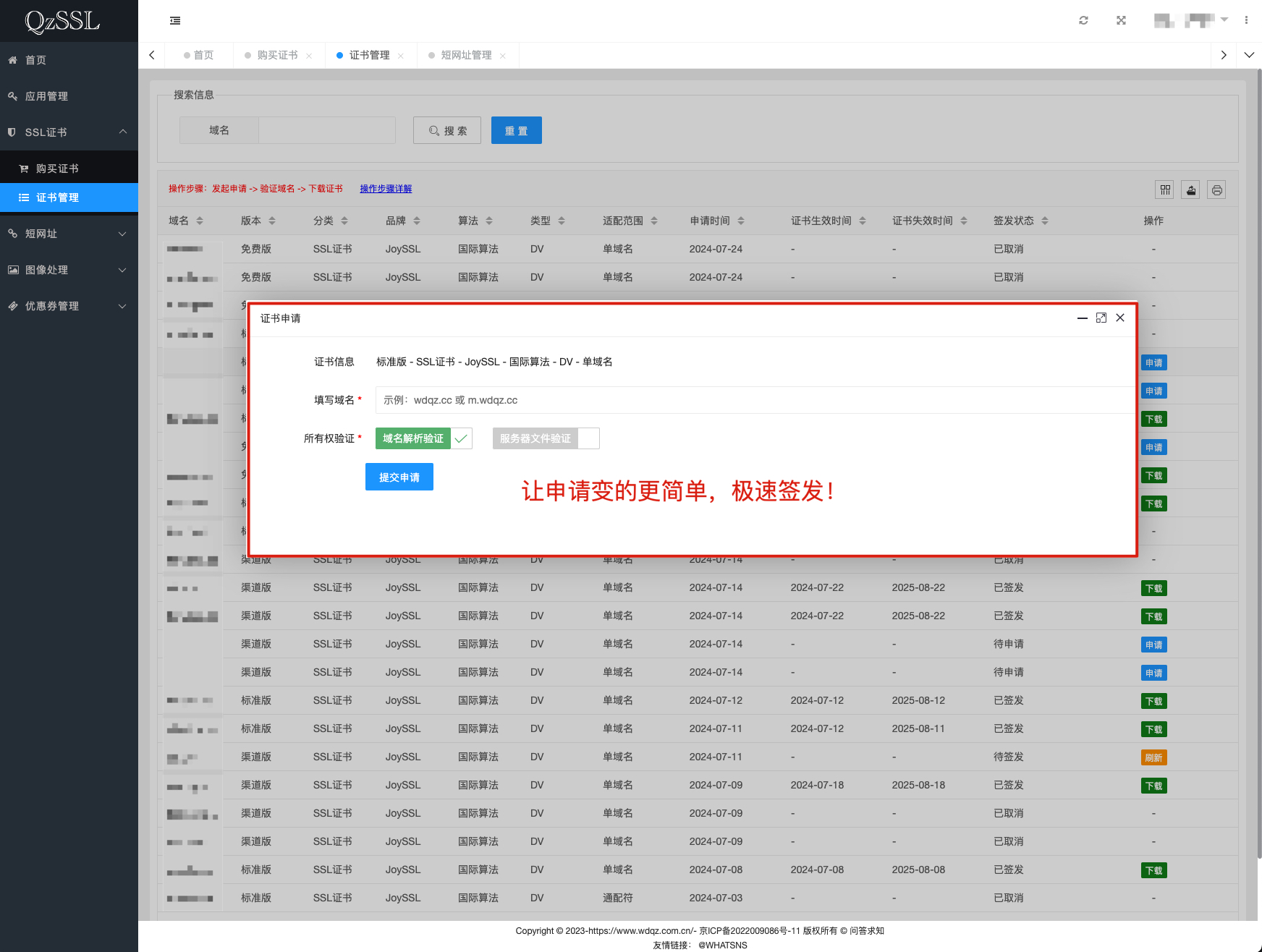 2024年和国内权威证书服务商 JoySSL 达成顶级合作! 现已完成 QzSSL 证书签发平台的搭建,欢迎大家使用和推荐给身边人!